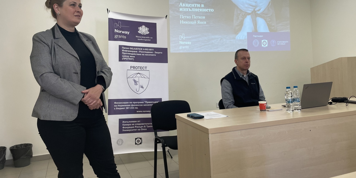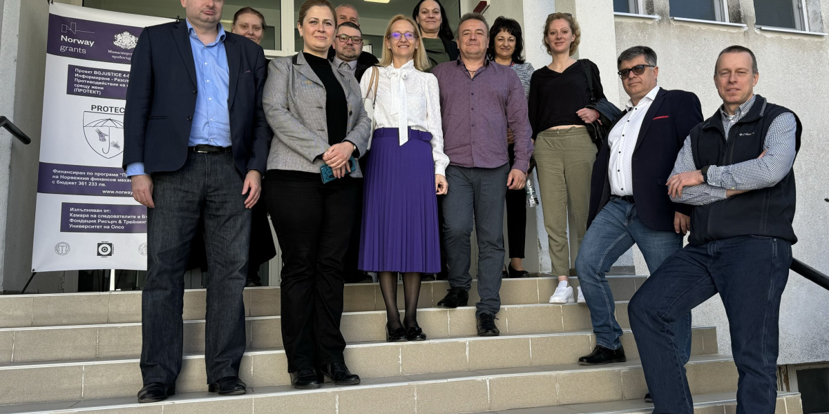 Камарата на следователите в България (КСБ) и фондация Рисърч и Трейнинг Пойнт представят основните дейности и резултати от проект "Протект", финансиран по Малка грантова схема на програма "Правосъдие" на НФМ 2014-2021.